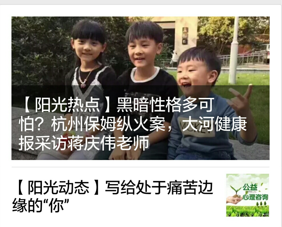 阳光心理公益咨询“你”是否因为家庭环境而自卑胆小?“你”是否刚参加工作,无法适应?“你”是否正为孩子的学习教育问题无计可施?“你”是否历经孤独,迷茫却无处诉说? ...