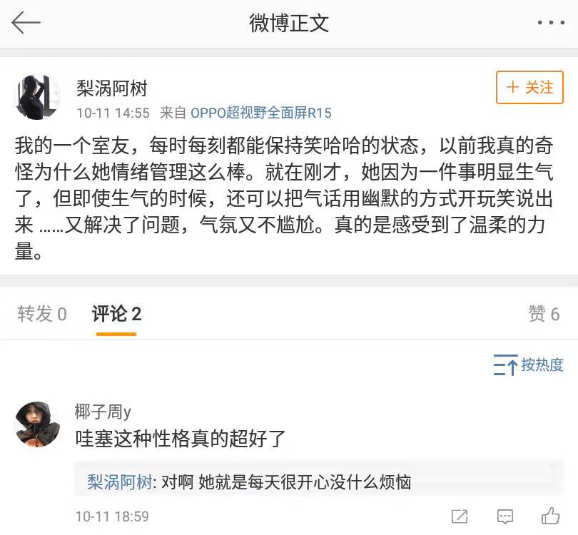 如果这位网友也并没有在心里压抑自己的情感,那她的人格发展真的是到了很高的境界了。