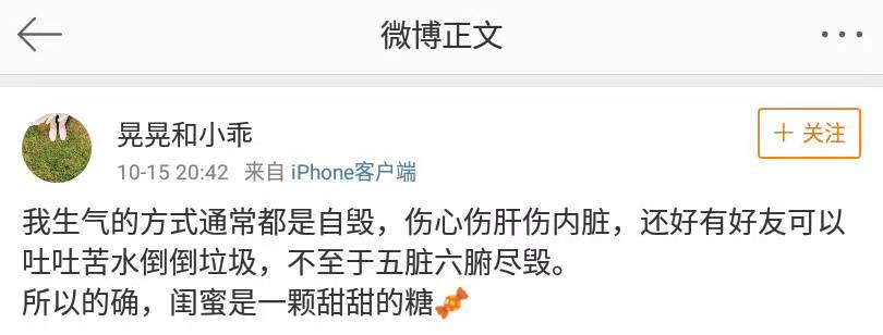 也是属于向内发泄的一种,不过好在她很愿意找自己的好朋友倾诉一下。