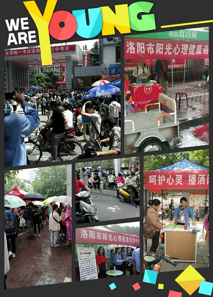 2017年6月7日、8日又迎来了一年之中的高考。阳光心理健康咨询中心的工作人员奔赴考场一线,为高考学生献上自己的一份爱心。