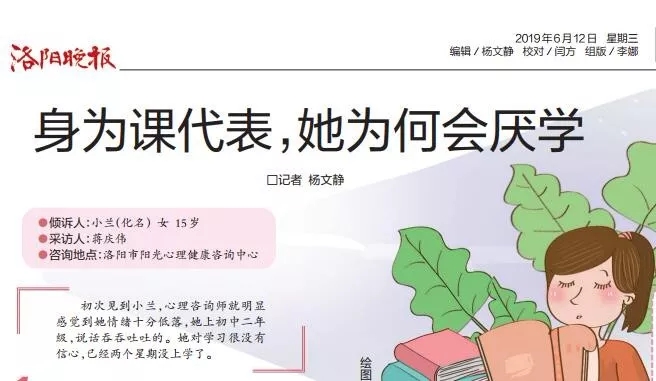 2019-06-15《洛阳晚报》携手阳光心理开展【望闻问切,考前减压】系列活动第二期来袭。本期案例题为:那个争强好胜的女生,怎么忽然考不好了?问诊小锦是个活泼开朗的女生,看起来一点儿也不像对考试焦虑的样子。她表示,自己在...