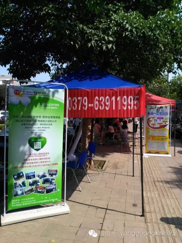 25日清晨7点钟,我们中心的两位老师:蒋慧萍老师和唐小兵老师就带着帐篷,板凳,心理减压资料,考试常识,情绪调节书籍,画册,爱心水、湿巾纸、考试工具等急需品来到了洛阳一高的学校外面。